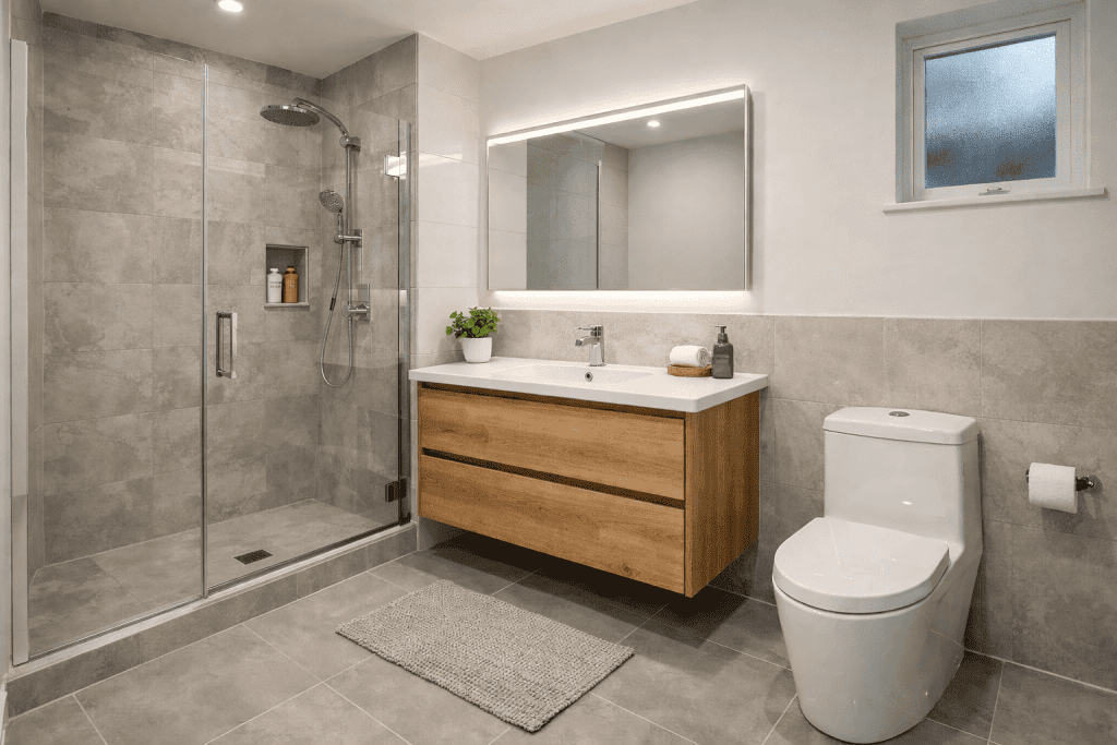 We maximize space in small bathrooms through smart layout planning that improves flow, reduces visual clutter, and makes every inch work harder. By carefully positioning fixtures and incorporating efficient design solutions, even compact bathrooms can feel open, functional, and impactful without increasing square footage.